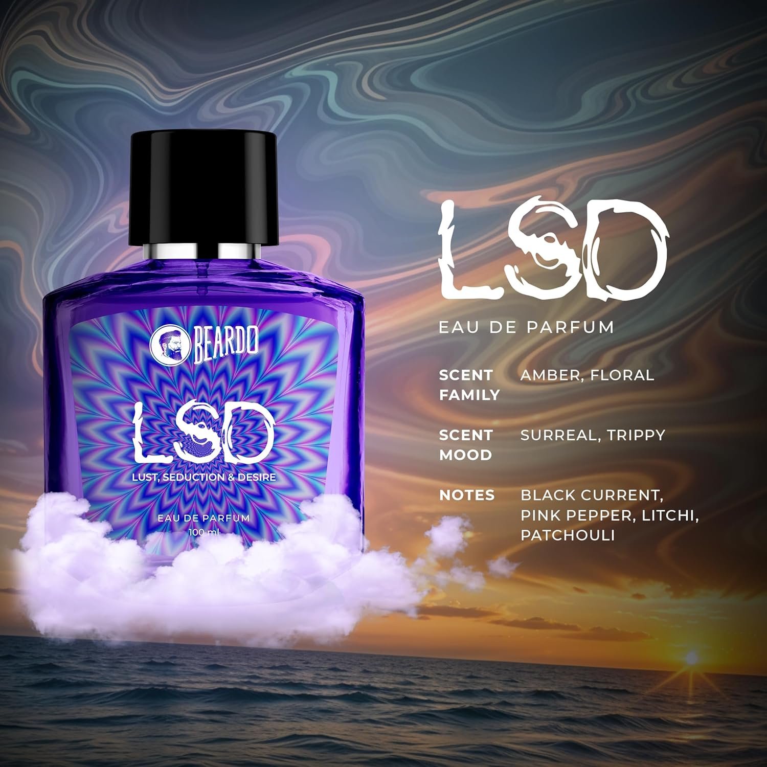 • Step into the surreal with Beardo’s LSD EDP, a scent crafted for men who turn their wildest imaginations into reality.
