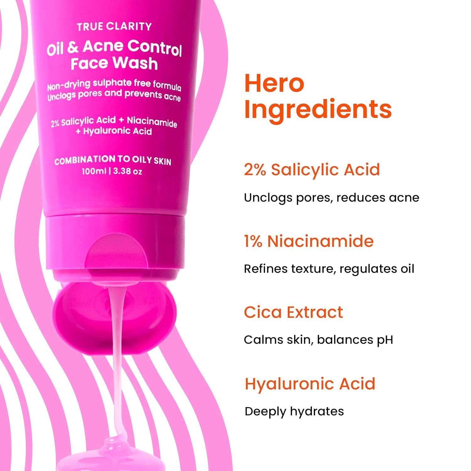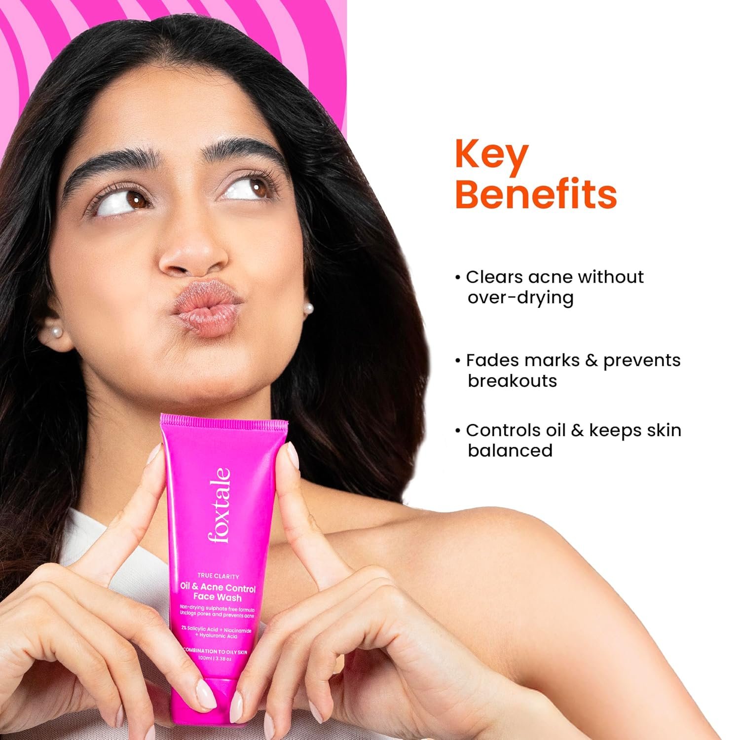 Foxtale Oil and Acne Control Face Wash | 2% Salicylic Acid + Niacinamide + Cica + Hyaluronic Acid | Fights Acne, Fades Marks, Controls Oil, Soothes Skin | Non-Drying Cleanser for Oily Skin