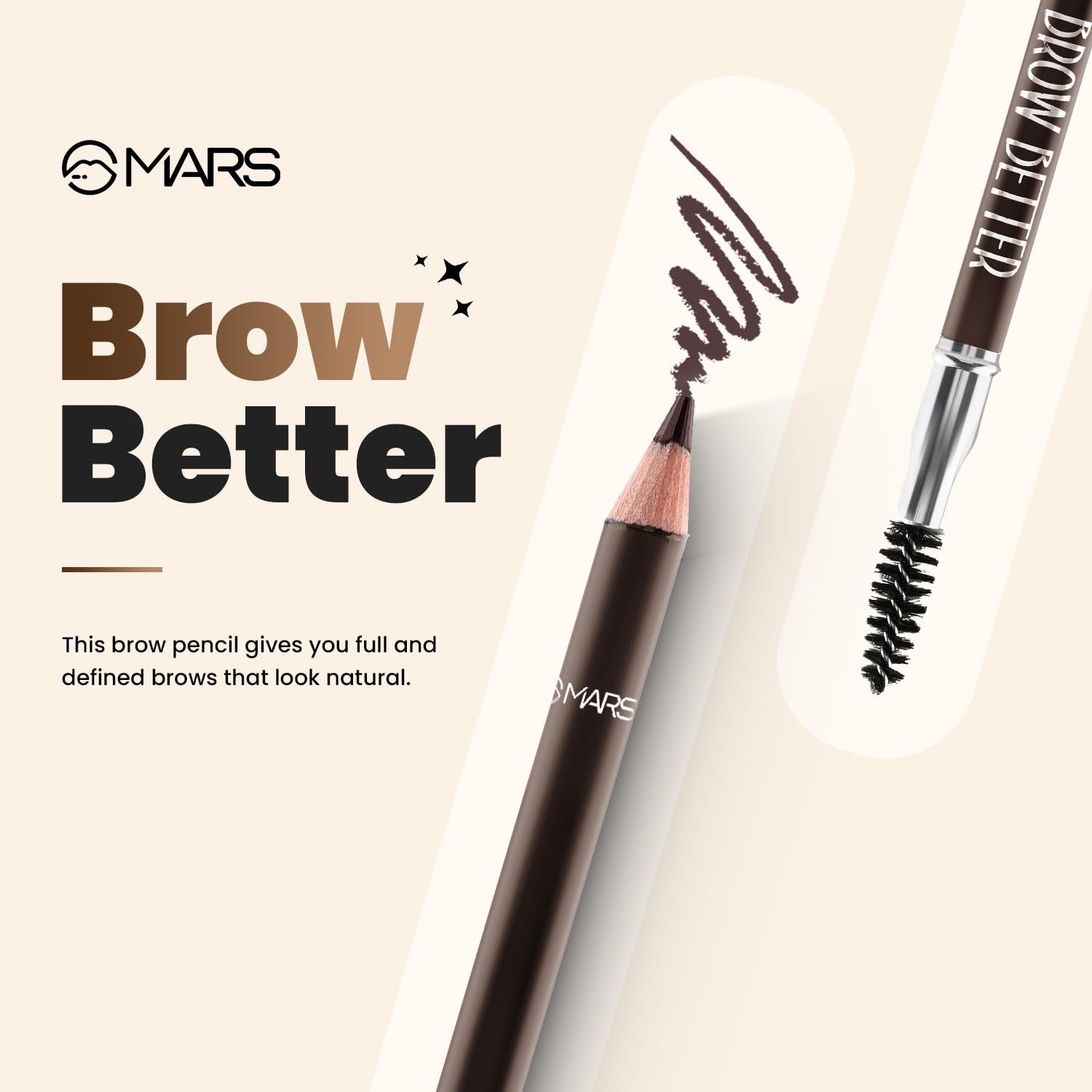MARS Brow Better Eyebrow Pencil with Spoolie | Long-Lasting & Smudge Proof | Rich Pigemention | Natural-Looking Results | Easy to Sharpen | 1.4 gm | Dark Brown |