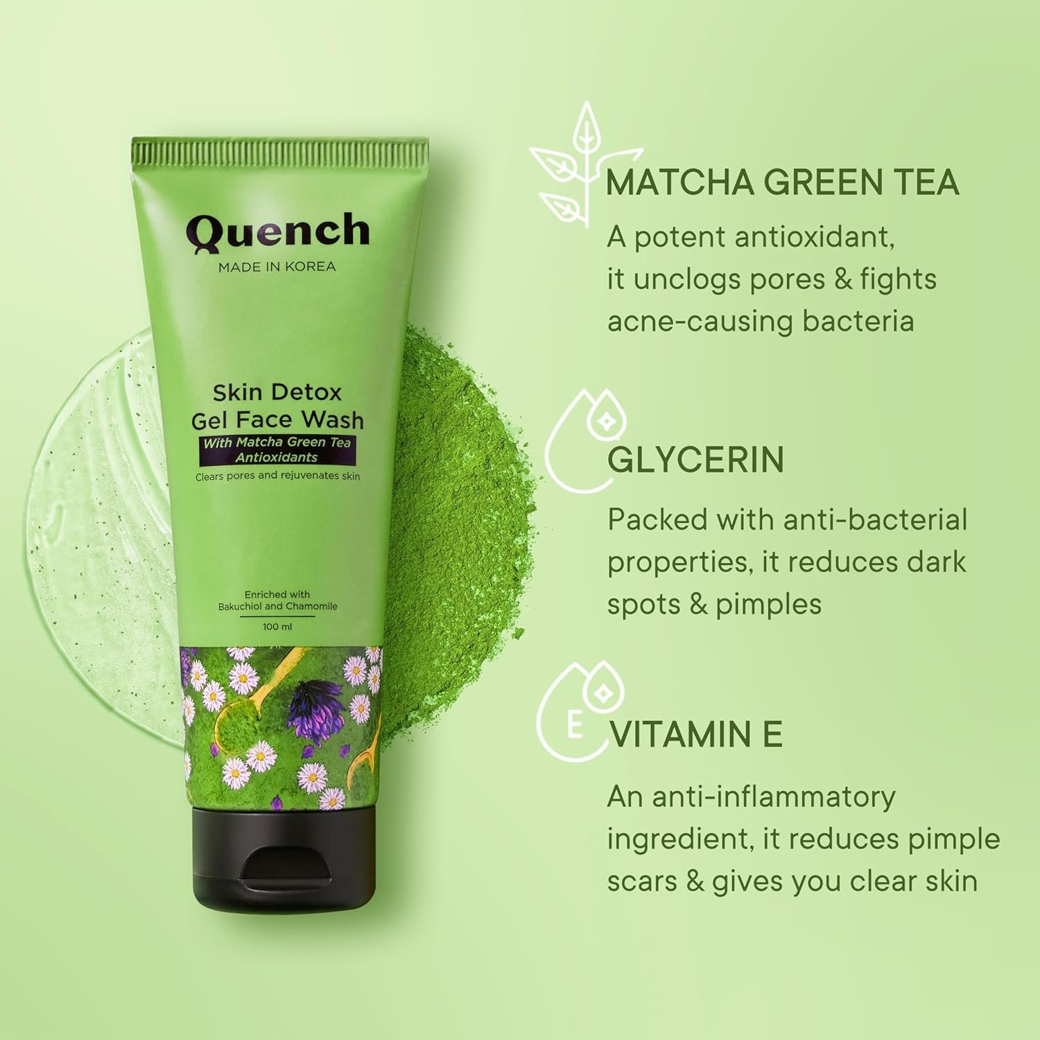 Be the first to review “QUENCH BOTANICS Skin Detox Gel Face Wash with Matcha Green Tea Anti-Oxidants | Korean Face Wash for Oily & Acne-Prone Skin | Made in Korea (100ml)” Cancel reply