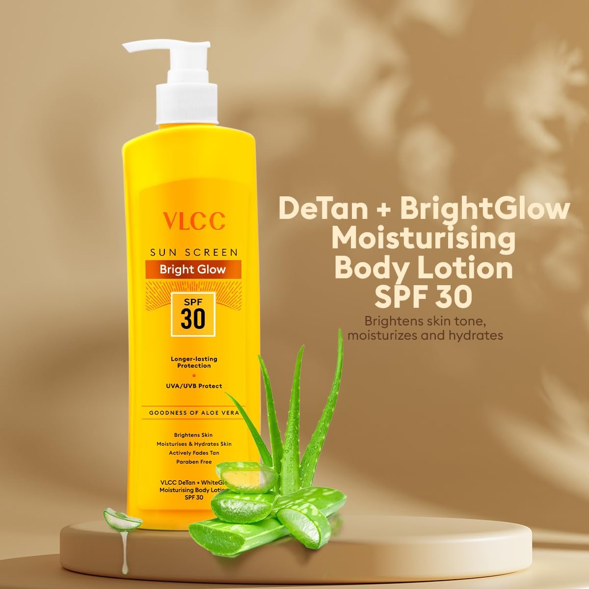 - VLCC De Tan + WhiteGlo Moisturising Body Lotion SPF 30 PA+++ is an effective formulation that Brightens skin, moisturizes and soothes the skin.